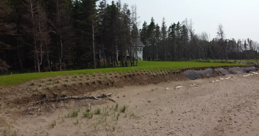Over the years, storms, including Hurricane Fiona, accelerated the loss, carving steep bluffs, toppling trees and putting the land at risk. The homeowners wanted a solution that could provide long-term protection while maintaining accessibility and a natural look along the coast. They noticed that the conventional riprap systems protecting some nearby homes had slumped, rocks had been displaced and that the structures appeared too unstable to safely cross to access the beach.